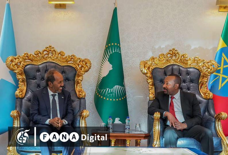 አዲስ አበባ፣ ሚያዝያ 6፣ 2015 (ኤፍ ቢ ሲ) ጠቅላይ ሚኒስትር ዐቢይ አሕመድ የሶማሊያውን ፕሬዚዳንት ሐሰን ሼክ መሐሙድን በጽሕፈት ቤታቸው ተቀብለው ማነጋገራቸውን ገለጹ።