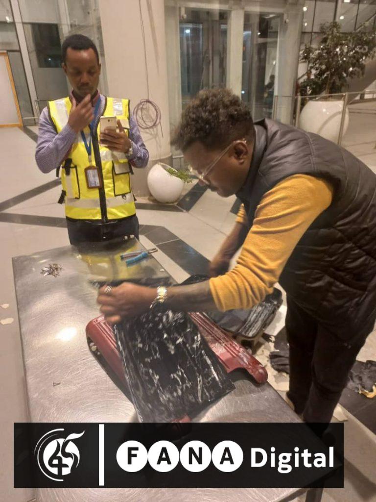 በዚህም ከጉዞ በፊት በቦሌ ዓለም አቀፍ አውሮፕላን ማረፊያ በሚያደርገው የሰው አካልና የሻንጣ ፍተሻ በተጠርጣሪው የጉዞ ሻንጣ አካል ውስጥ ተሰርቶ ሊያልፍ የነበረ በዱቄት መልክ የተዘጋጀ 2 ነጥብ 10 ኪሎ ግራም ኮኬይን አደገኛ ዕፅ ከተጠርጣሪው ጋዜጠኛ ጋር ከምሽቱ 2 ሰዓት ከ40 መያዙ ታውቋል፡፡