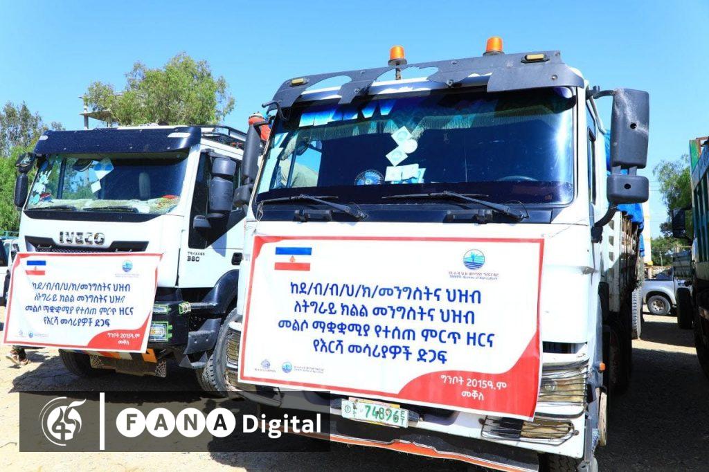 አዲስ አበባ ፣ ግንቦት 12 ፣ 2015 (ኤፍ ቢ ሲ) የደቡብ ብሔር ብሔረሰቦችና ህዝቦች ክልል መንግስት እና ህዝብ ለትግራይ ክልል መልሶ ማቋቋሚያ ከ18 ሚሊየን ብር በላይ የሚገመት የሰብል ምርጥ ዘርና የተለያዩ የእርሻ መሳሪያዎች ድጋፍ አበርክቷል።