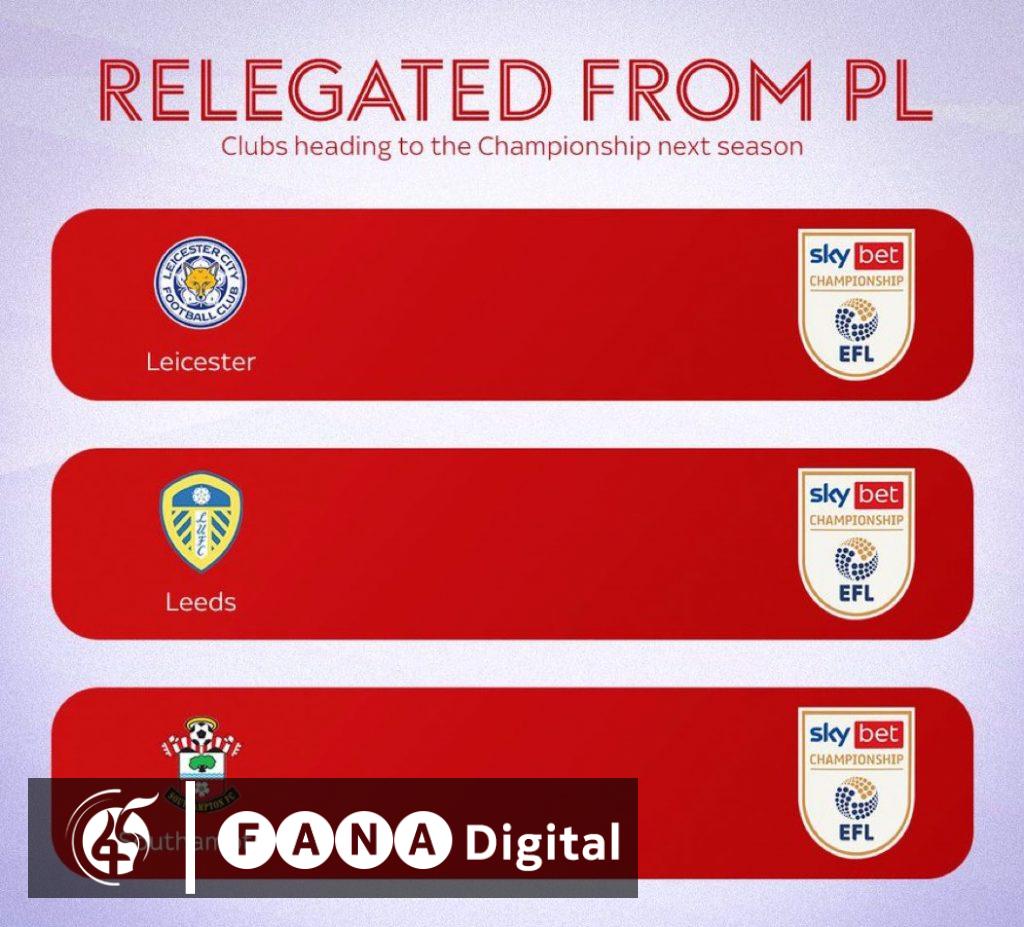 በአንጻሩ ሊድስ እና ሌሲስተር ቀደም ብሎ መውረዱን ያረጋገጠውን ሳውዝሃምተንን ተከትለው ወደ ታችኛው ሊግ ወርደዋል።