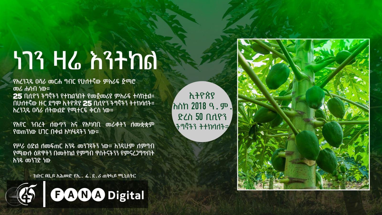 ጠቅላይ ሚኒስትሩ 25 ቢሊየን ችግኞች የተተከሉበት የመጀመሪያው ምዕራፍ መሳካቱን አስታውቀዋል።