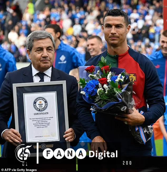 ይህን ተከትሎም ሮናልዶ በወንዶች ምድብ ለብሄራዊ ቡድን ብዙ ጊዜ የተሰለፈ ተጫዋች በመሆን የዓለም ድንቃ ድንቅ መዝገብ ሰርተፍኬትን ከጨዋታው በኋላ ተቀብሏል፡፡