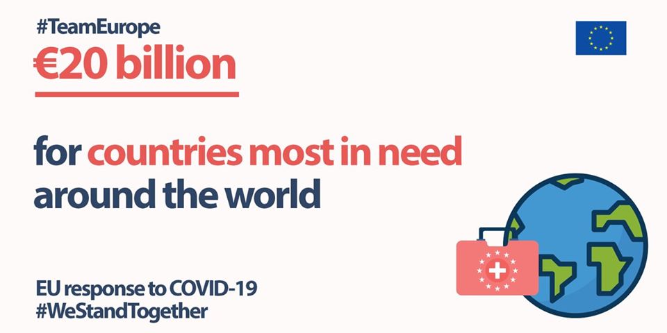 የአውሮፓ ህብረት አባል ሀገራት “#TeamEurope” የተባለ ኢኒሼቲቭ ማቋቋማቸውን የገለፀው ህብረቱ፥ ኢኒሼቲቩ የህብረቱ አባል ሀገራትና ከህብረቱ ጋር ግንኙነት ያላቸው ሀገራት ለኮሮናቫይረስን መከላከል የ20 ቢሊየን ዩሮ የድጋፍ ማእቀፍ ይፋ አድርጓል።