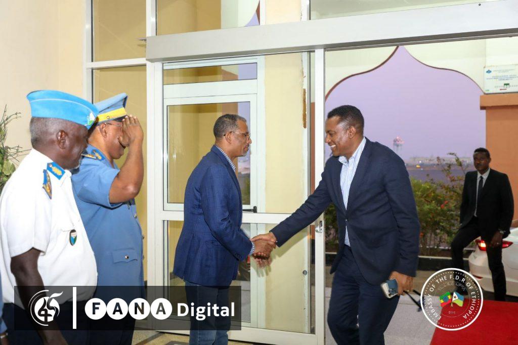 የልዑካን ቡድኑ አባላት ጅቡቲ ዓለም አቀፍ አውሮፕላን ማረፊያ ሲደርሱ በጅቡቲ የኢፌዴሪ ኤምባሲ ባለ ሙሉ ሥልጣን አምባሰደር ብርሃኑ ፀጋዬ አቀባበል አድርገውላቸዋል።