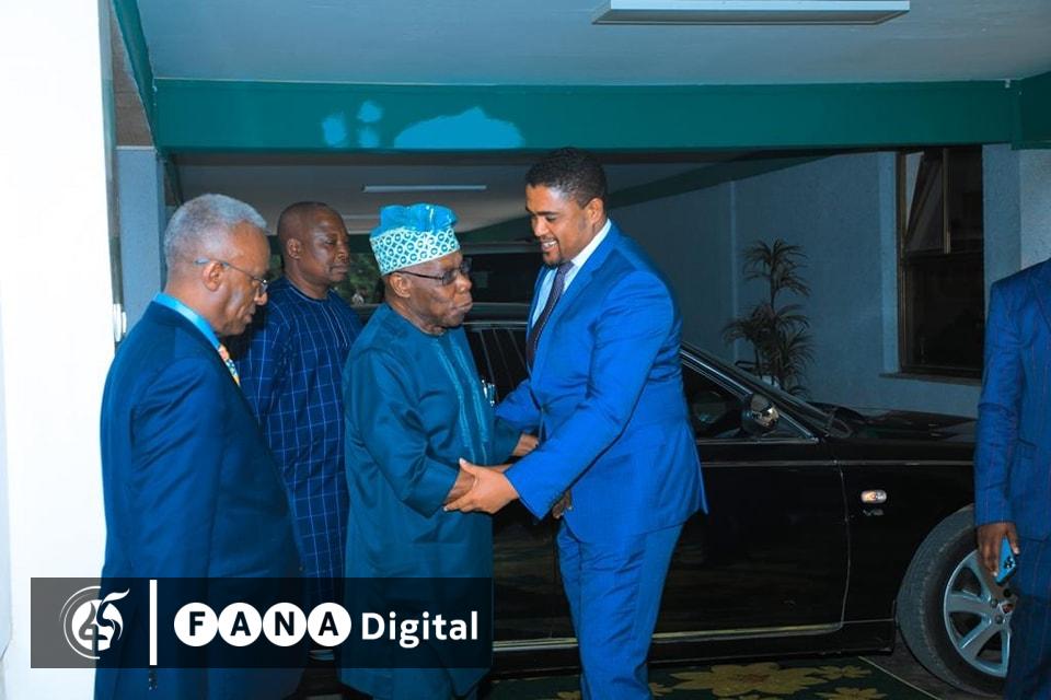 አዲስ አበባ፣ ሰኔ 20፣ 2015 (ኤፍ ቢ ሲ) የኦሮሚያ ክልል ርዕሰ መስተዳድር ሽመልስ አብዲሳ ከቀድሞው የናይጄሪያ ፕሬዚዳንትና በአፍሪካ ሕብረት ኮሚሽን የአፍሪካ ቀንድ ከፍተኛ ተወካይ ኦሌሴጉን ኦባሳንጆ ጋር ተወያዩ፡፡