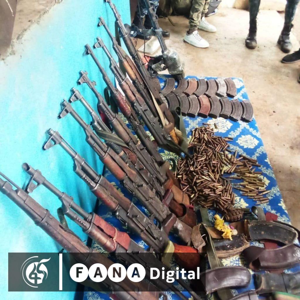 በደቡብ ምዕራብ ኢትዮጵያ ሕዝቦች ክልልና በጋምቤላ ክልል ዲማ ወረዳ 20 ክላሽንኮቭ ከ934 መሰል ጥይቶች ጋር፣ 8 ሽጉጥ ከ54 መሰል ጥይቶች ጋር፣ ሁለት ኤፍ ዋን ቦንቦች እና አንድ ጂ ፒ ኤስ መያዛቸው ተገልጿል፡፡