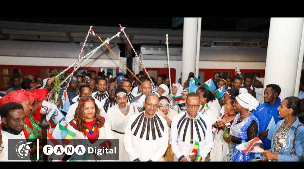 አዲስ አበባ፣ ሰኔ 28 ቀን 2015 (ኤፍ ቢ ሲ) የቀጠናውን ትብብር የማጠናከር ዓላማ ይዞ ከጅቡቲ ናጋድ የባቡር ጣቢያ ተነስቶ በድሬዳዋና በአዳማ ከተሞች ጉብኝት ሲያደርግ የነበረው የኢትዮ-ጂቡቲ የህዝብ ለህዝብ ግንኙነት የባቡር ጉዞ ልዑክ ፉሪ-ለቡ ባቡር ጣቢያ ደርሷል፡፡