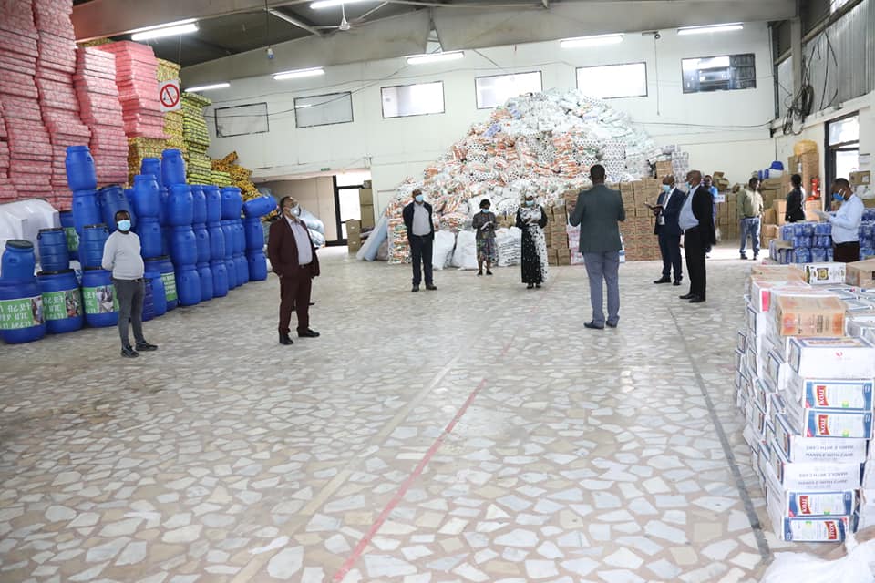 አዲስ አበባ ፣ ሚያዚያ 23 ፣ 2012 (ኤፍ ቢ ሲ) የአስቸኳይ ጊዜ አዋጅ አፈጻፀም መርማሪ ቦርድ አባላት የአዲስ አበባ ከተማ አስተዳደር ኮቪድ19ን ለመከላከልና የገቢ ምንጭ የሌላቸውን ነዋሪዎች ለመደገፍ ያሰባሰባቸውን ንብረቶች ጎብኝተዋል።