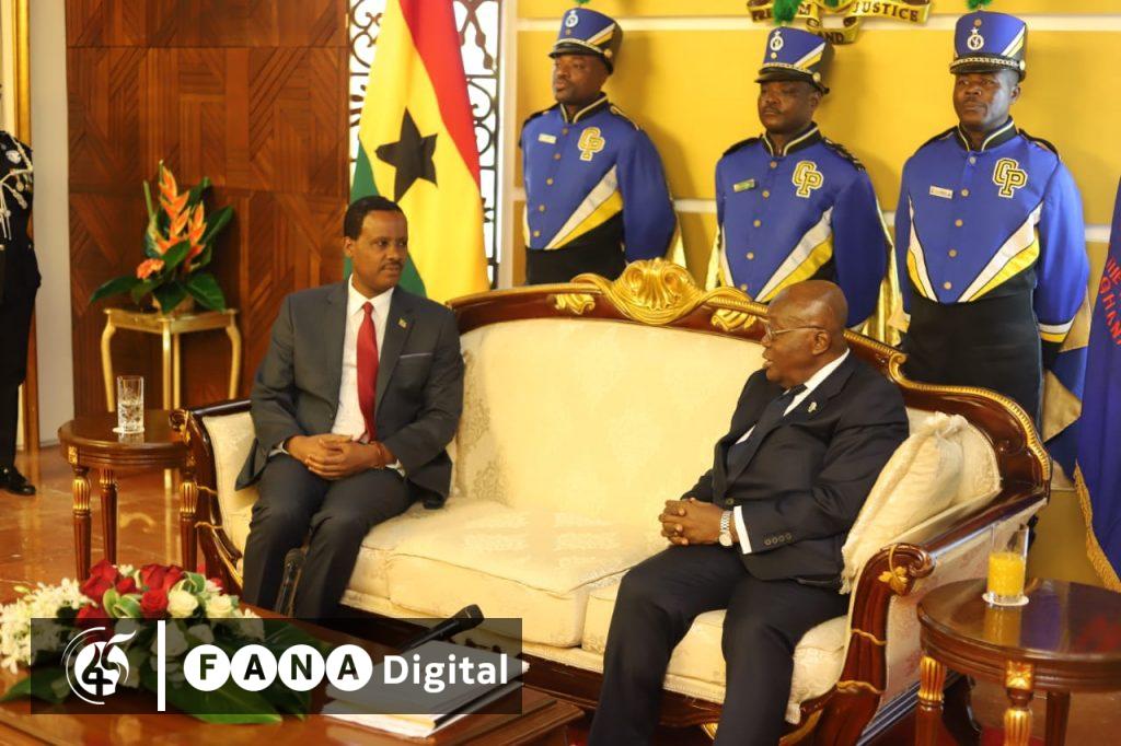 አዲስ አበባ፣ ሐምሌ 4፣ 2015 (ኤፍ ቢ ሲ) የጋናው ፕሬዚዳንት ናና አዶ ዳንኩዋ አኩፎ አዶ የኢትዮጵያና የጋናን ግንኙነት የበለጠ ለማሳደግ እና ለማጠናከር ቁርጠኛ እና ዝግጁ መሆናቸውን አረጋግጠዋል።