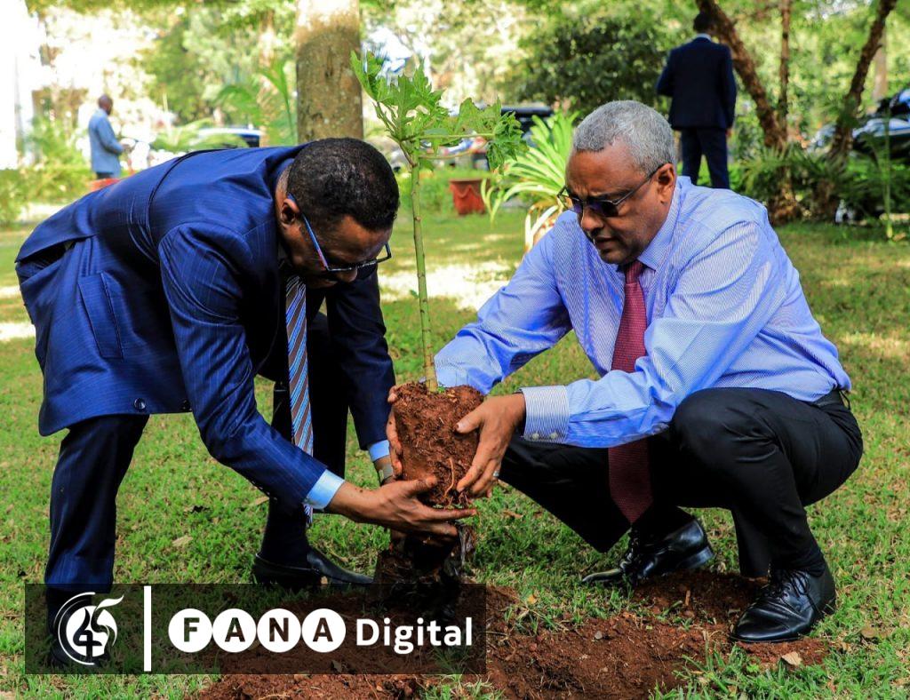 አዲስ አበባ፣ ሐምሌ 5፣ 2015 (ኤፍ ቢ ሲ) የኢፌዴሪ ምክትል ጠቅላይ ሚኒስትር እና የውጭ ጉዳይ ሚኒስትር ደመቀ መኮንን ኬንያ በሚገኘው የኢትዮጵያ ኤምባሲ አረንጓዴ ዐሻራቸውን አኖሩ፡፡
