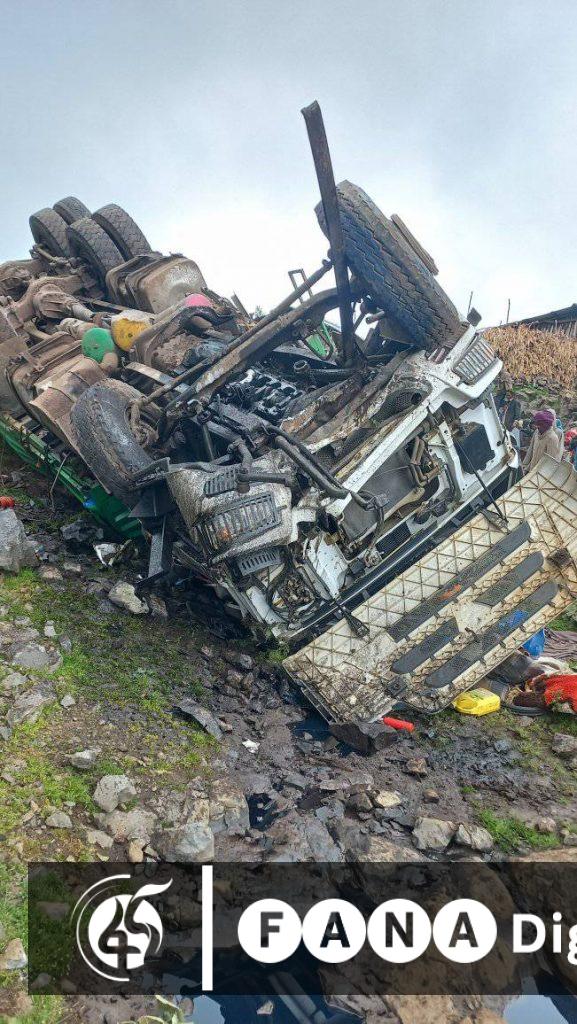 አደጋው ከደባርቅ ከተማ ወደ ጃናሞራ 225 ኩንታል የአፈር ማዳበሪያ ከ16 ሰዎች ጋር ጭኖ ሲጓዝ የነበረ የጭነት ተሽከርካሪ ከመንገድ ወጥቶ በመገልበጡ ነው የደረሰው።
