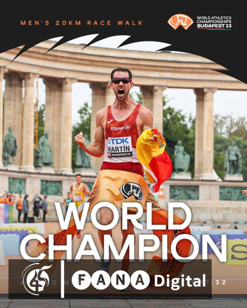 አዲስ አበባ፣ ነሐሴ 13፣ 2015 (ኤፍ ቢ ሲ) በሃንጋሪ ቡዳፔስት እየተካሄደ በሚገኘው በ19ኛው የዓለም አትሌቲክስ ሻምፒዮና ስፔናዊው አትሌት አልቫሮ ማርቲን የመጀመሪያውን ወርቅ ሜዳሊያ አገኘ።