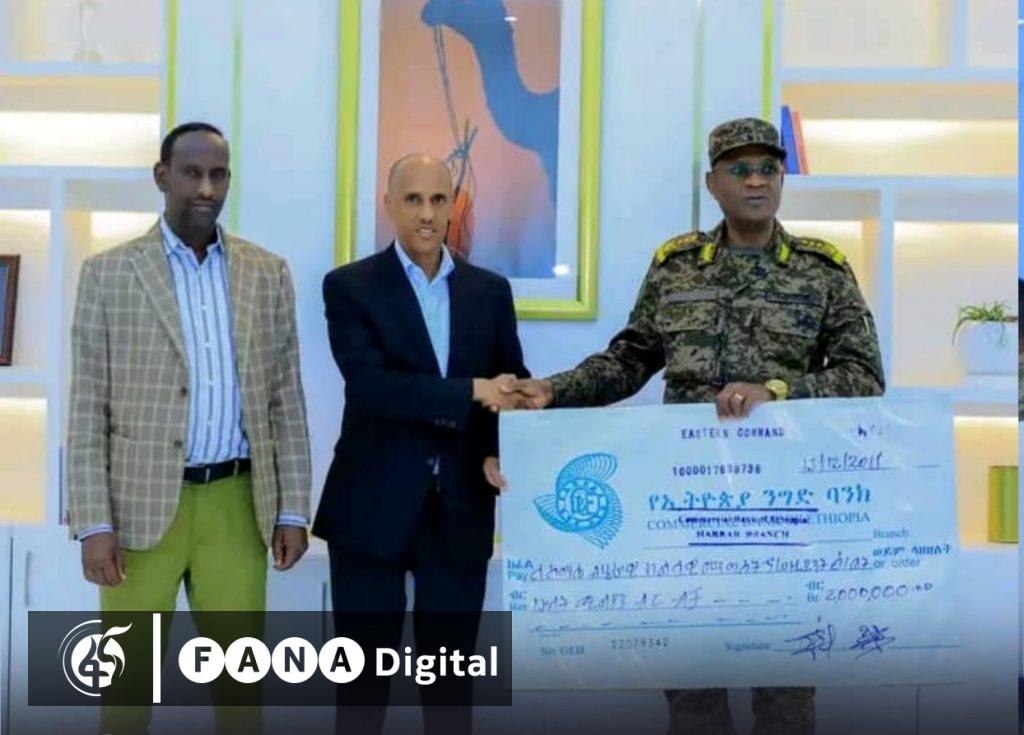 አዲስ አበባ፣ ነሐሴ 15፣ 2015 (ኤፍ ቢ ሲ) በመከላከያ ሠራዊት የምስራቅ ዕዝ በጅግጅጋ ከተማ አዲሱ ታይዋን የገበያ ማዕከል በተከሰተው የእሳት አደጋ ሀብት ንብረታቸው ለወደመባቸው ተጎጂዎች የ2 ሚሊየን ብር ድጋፍ አደረገ፡፡