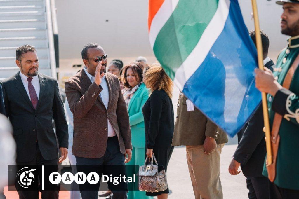 አዲስ አበባ ፣ ነሐሴ 17 ፣ 2015 (ኤፍ ቢ ሲ) ጠቅላይ ሚኒስትር ዐቢይ አሕመድ(ዶ/ር) እና ቀዳማዊት እመቤት ዝናሽ ታያቸው ከሚኒስትሮች ልዑካን ቡድን ጋር በመሆን ደቡብ አፍሪካ ጆሃንስበርግ ከተማ ገብተዋል።