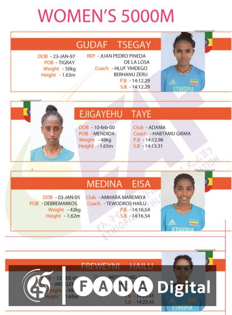 እንዲሁም አትሌት ፍሬወይኒ ኃይሉ 4ኛ እና አትሌት መዲና ኢሳ 6ኛ ደረጃን ይዘው ከየምድባቸው በማጠናቀቃቸው ነው ለፍጻሜ የደረሱት፡፡