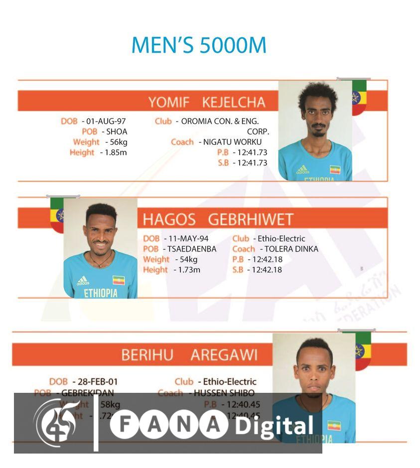 በዛሬው እለትም የ5 ሺህ ሜትር የወንዶች ማጣሪያ ውድድር ምሽት 2 ሰዓት ላይ የሚካሄድ ሲሆን÷ ዮሚፍ ቀጀልቻ፣ሀጐስ ገ/ሕይወት እና በሪሁ አረጋዊ ኢትዮጵያን ወክለው እንደሚሳተፉ የአትሌቲክስ ፌደሬሽን መረጃ ያመላክታል፡፡