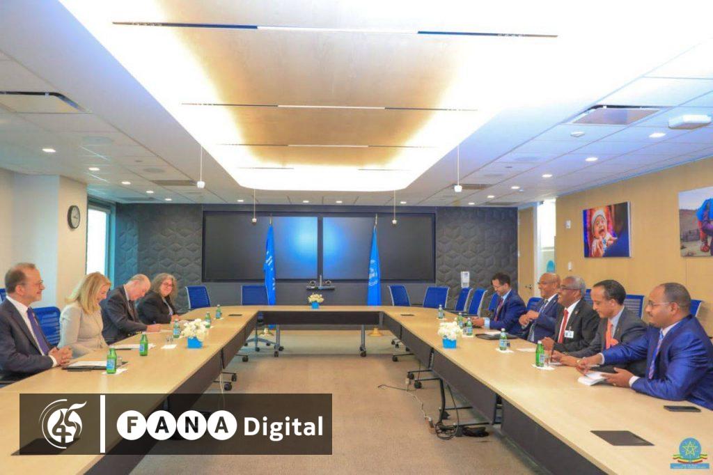 ከ78ተኛው የተባበሩት መንግስታት ድርጅት ጠቅላላ ጉባኤ በተጓዳኝ ምክትል ጠቅላይ ሚኒስትርና የውጭ ጉዳይ ሚኒስትር ደመቀ መኮንን ከዩኒሴፍ ዋና ዳይሬክተር ካትሪን ሩሴልና ከኦቻ ኃላፊ ማርቲን ግሪፊትስ ጋር ተወያይተዋል።