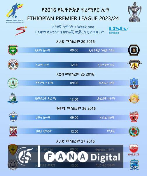 አዲስ አበባ፣ መስከረም 19፣ 2016 (ኤፍ ቢ ሲ) የ2016 የኢትዮጵያ ፕሪሚየር ሊግ ነገ በአዳማ ሳይንስና ቴክኖሎጂ የኒቨርሲቲ ስታዲየም ይጀመራል፡፡
