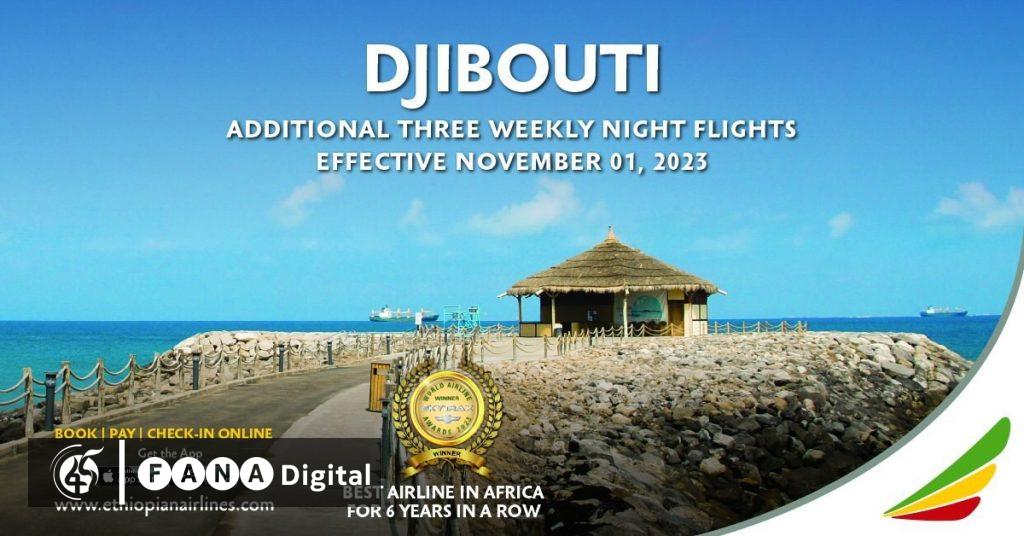 አየር መንገዱ ከፈረንጆቹ ኅዳር 1ቀን 2023 ጀምሮ ወደ ጂቡቲ የሚያደርገውን በረራ የሚያሳድገው ሦስት የሌሊት በረራዎችን በመጀመር መሆኑንም ጠቁሟል፡፡