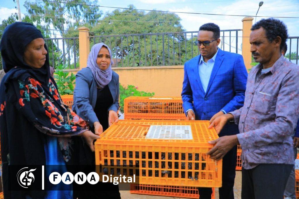 አቶ ኦርዲን በክልሉ አቦከር ወረዳ ለሚገኙ 100 እማወራዎች የሌማት ትሩፋትን ለማስፋፋት የሚያግዙ ዶሮዎችን አበርክተዋል።