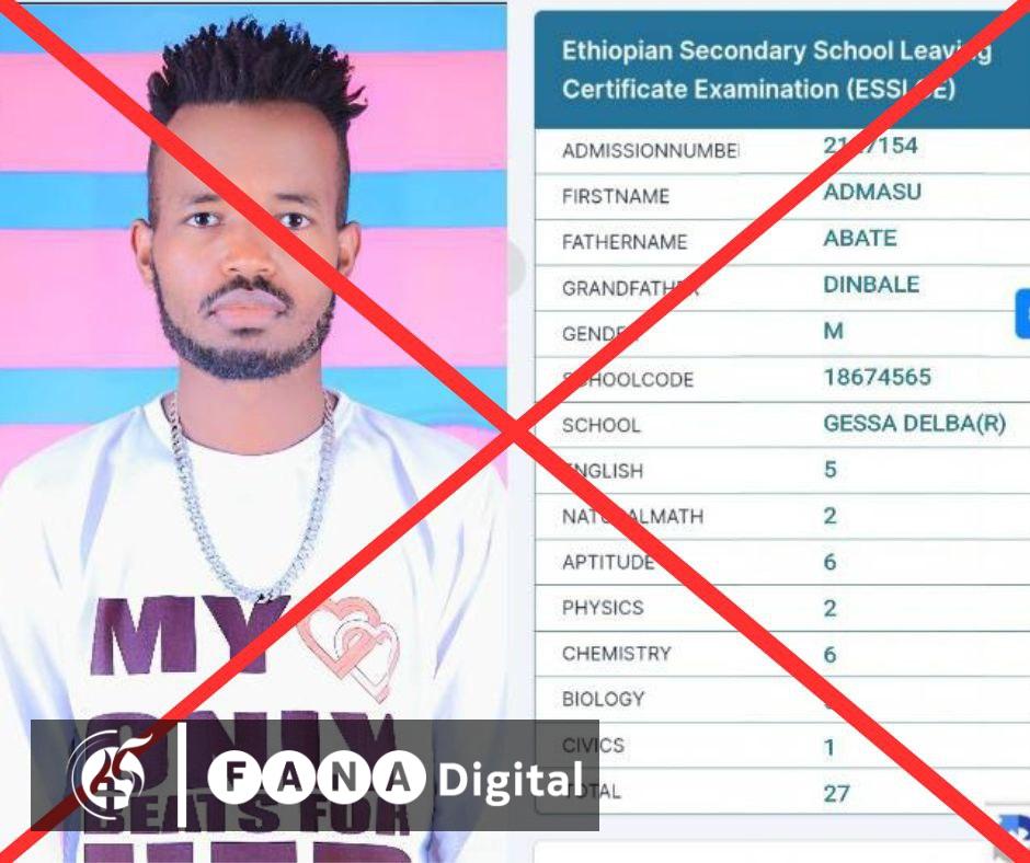 ለአብነትም ከ280 ሺህ በላይ ተከታይ ባለው አንድ የፌስ ቡክ ገፅ ላይ “አድማሱ አባተ ድንባለ” በሚል ስም የሚጠራ ግለሰብ በገሳ ዳላባ ትምህርት ቤት ተማሪ እንደሆነ በመግለጽ በ12ኛ ክፍል መልቀቂያ ፈተና 27 ነጥብ አምጥቻለሁ በሚል በማህበራዊ ሚዲያ የፎቶ መረጃ አሰራጭቷል።