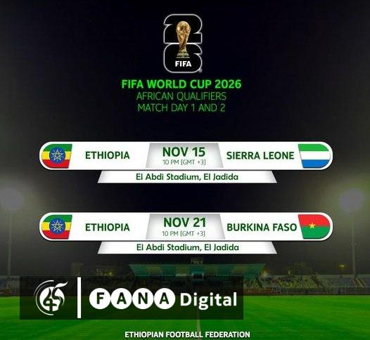 የመጀመሪያው ጨዋታ ከሴራሊዮን ጋር ኅዳር 5 ቀን 2016 ዓ.ም እና ሁለተኛው ጨዋታ ከቡርኪና ፋሶ ጋር ኅዳር 11 ቀን 2016 ዓ.ም እንደሚደረግ ታውቋል፡፡