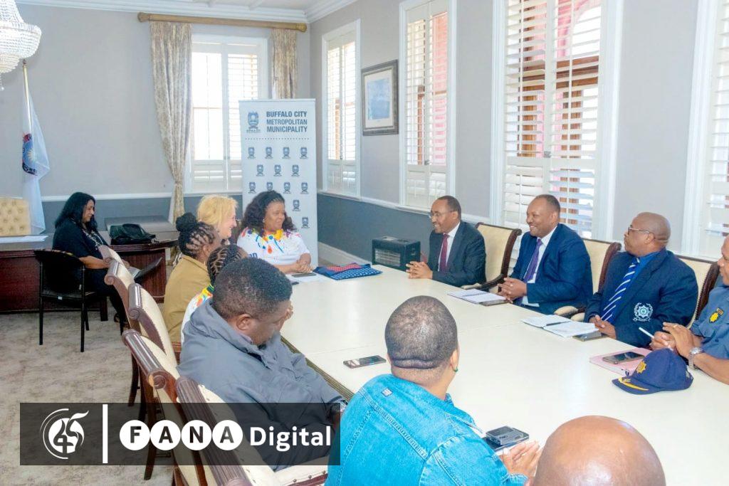 አዲስ አበባ፣ ሕዳር 6፣ 2016 (ኤፍ ቢ ሲ) በደቡብ አፍሪካ የኢትዮጵያ አምባሳደር ሙክታር ከድር (ዶ/ር) ከባፉሎ ከተማ ከንቲባ ፕሪንሰስ ፋኩ እና ሌሎች አመራሮች ጋር ተወያይተዋል፡፡