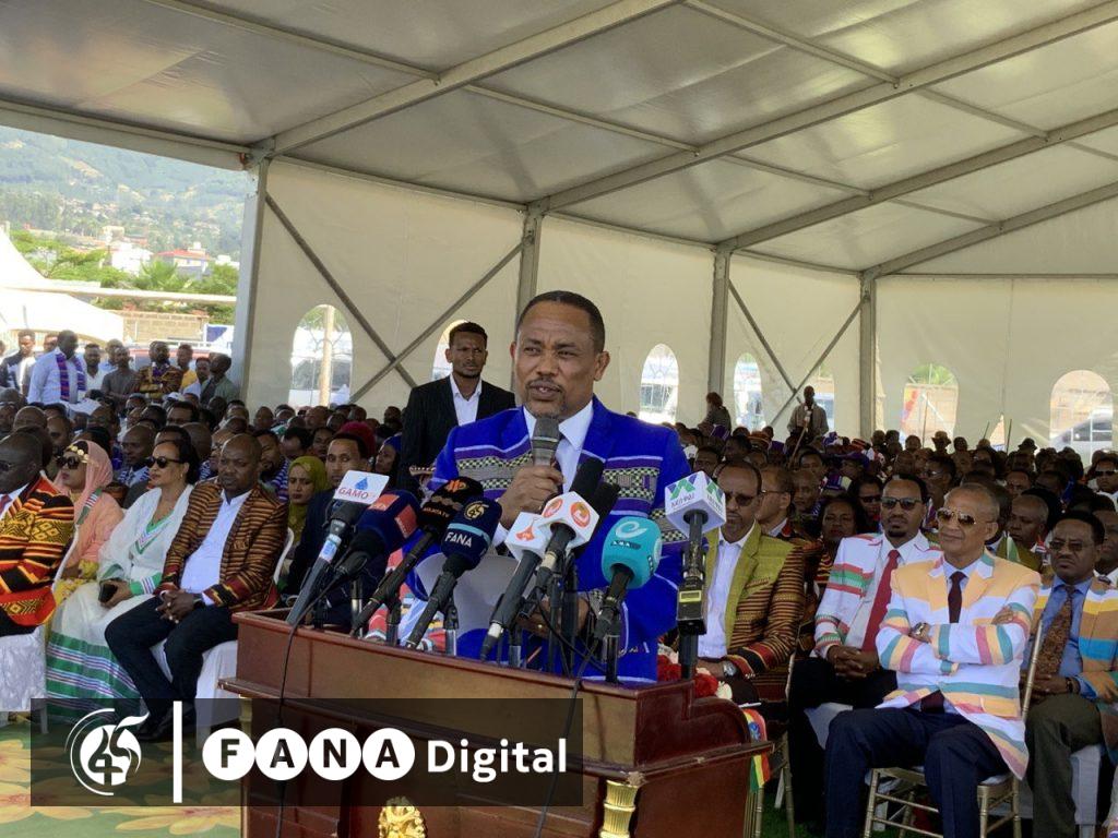 በፈተናዎች ታጅቦ በዳበረ ውይይትና ሰላምን ቀዳሚ ባደረገ ወንድማማችነት በፍጹም መተሳሰብና መደጋገፍ የህዝቡን ፍትሀዊ ተጠቃሚነትና ልማትን ማዕከል አድርጎ ለተደራጀው ለደቡብ ኢትዮጵያ ክልል ይፋዊ የምስረታ ስነ-ስርዓት እንኳን አደረሰን፤ አደረሳችሁ ሲሉ ገልጸዋል፡፡