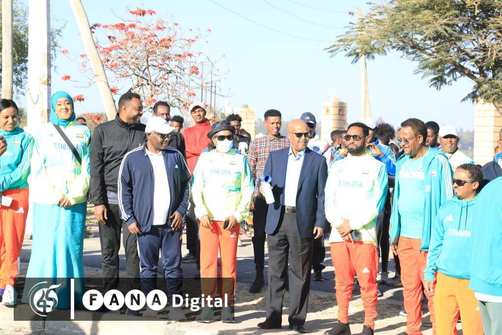 በውድድሩ ማስጀመሪያ ሥነ-ሥርዓት ላይ የትግራይ ክልል ጊዜያዊ አሥተዳደር ምክትል ርዕሰ መስተዳድር ሌተናንት ጄኔራል ፃድቃን ገ/ትንሳኤ፣ የባህልና ስፖርት ሚኒስት ዴዔታ አምባሳደር መስፍን ቸርነት፣ የአትሌቲክስ ፌዴሬሽን ፕሬዚዳንት ረዳት ኮሚሽነር ደራርቱ ቱሉ ተገኝተዋል፡፡