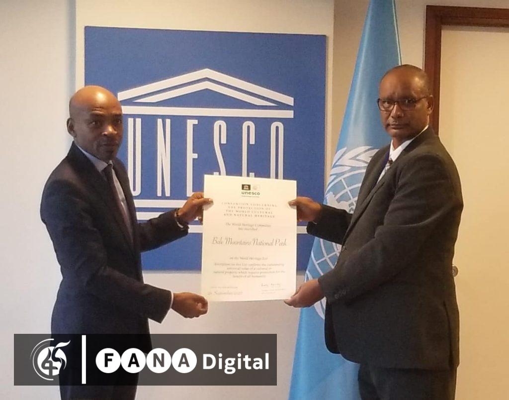 አዲስ አበባ፣ ሕዳር 17፣ 2016 (ኤፍ ቢ ሲ) ኢትዮጵያ የባሌ ተራሮች ብሔራዊ ፓርክና የጌዴኦ ባህላዊ መልክዓ ምድር ሕጋዊ የምዝገባ ምስክር ወረቀት ከተባበሩት መንግስታት የትምህርት፣ የሳይንስና የባህል ድርጅት (ዩኔስኮ) ተረክባለች፡፡