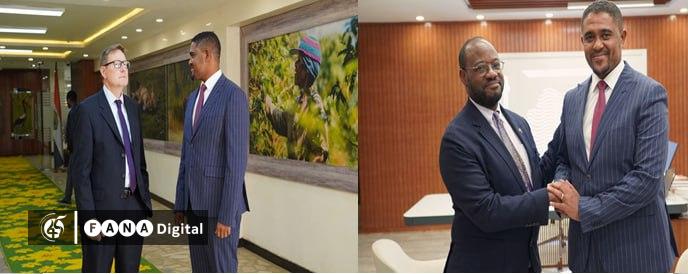 አዲስ አበባ፣ ሕዳር 26፣ 2016 (ኤፍ ቢ ሲ) የኦሮሚያ ክልል ርዕሰ መስተዳድር ሽመልስ አብዲሳ በኢትዮጵያ ከብሪታኒያ አምባሳደር ዳረን ዌልች እና የአሜሪካ አምባሳደር ኤርቪን ጆሴ ማሲንጋ ጋር ተወያይተዋል፡፡