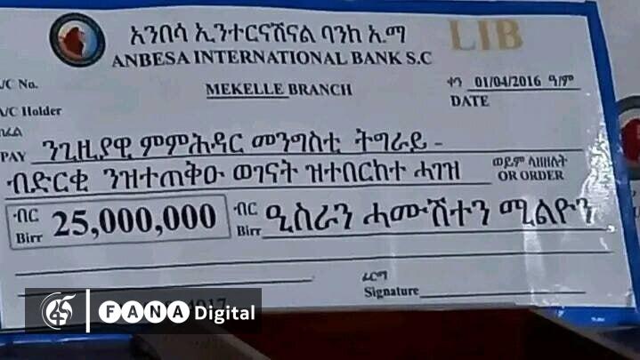 ድጋፉን የአንበሳ ባንክ ፕሬዚዳንት አቶ ዳንኤል ተኸስተ በመቐለ ተገኝተው ለትግራይ ክልል ጊዜያዊ አስተዳደር የሥራ ሀላፊዎች አስረክበዋል፡፡