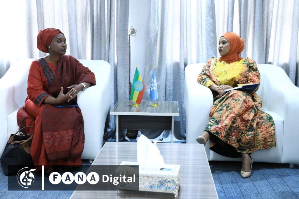 የሴቶችና ማህበራዊ ጉዳይ ሚኒስትር ዴኤታ ሁሪያ አሊ እና የአይኦኤም የኢትዮጵያ ቺፍ ኦፍ ሚሽን አቢባቶው ዋኔ በጋራ መስራት በሚቻልባቸው ጉዳዮች ዙሪያ ተወያይተዋል።