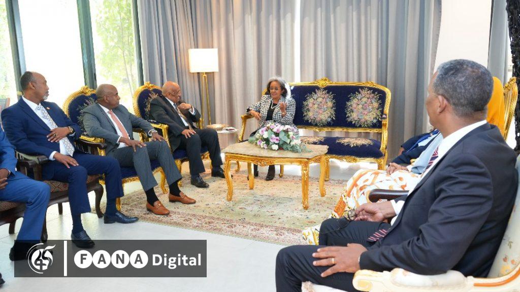 አዲስ አበባ፣ ታኅሣስ 13፣ 2016 (ኤፍ ቢ ሲ) ፕሬዚዳንት ሣኅለ ወርቅ ዘውዴ በጅቡቲ ብሔራዊ ምክር ቤት ፕሬዚዳንት ዲሌይታ መሀመድ ዲሌይታ ከተመራው የልዑካን ቡድን አባላት ጋር ተወያይተዋል፡፡