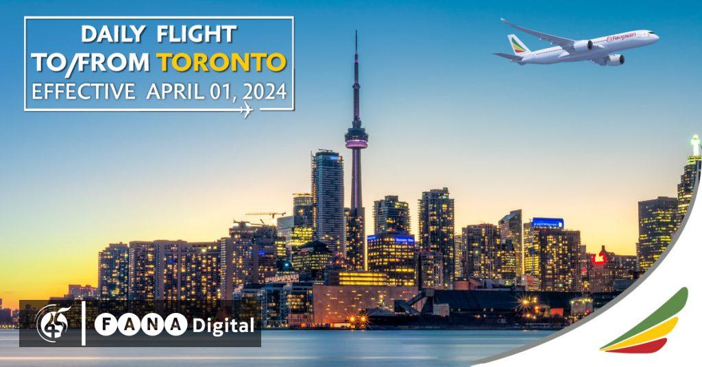 ዓየር መንገዱ ከአዲስ አበባ ቶሮንቶ እንዲሁም ከቶሮንቶ አዲስ አበባ የሚያደርገውን የበረራ ቁጥር ከፈረንጆቹ ሚያዝያ 1 ቀን 2024 ጀምሮ እንደሚያሳድግ ገልጿል፡፡