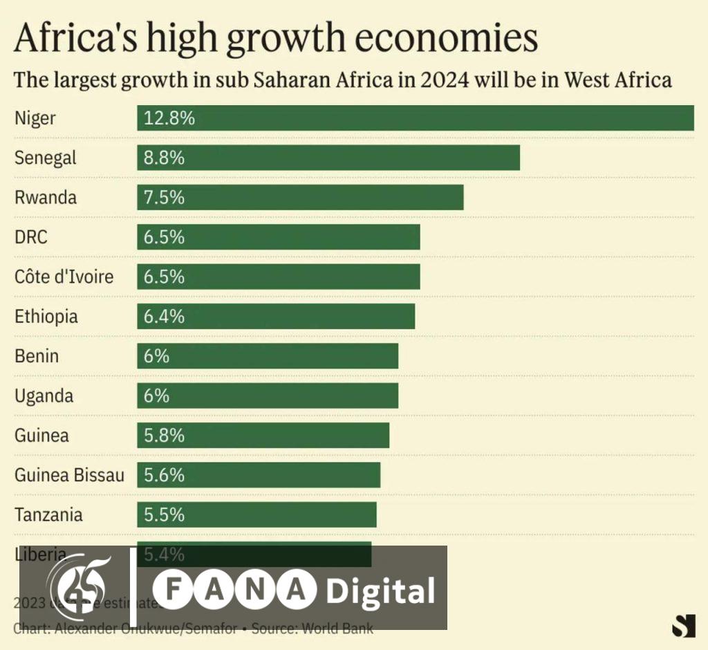 የዓለም ባንክ በዚህ ሣምንት ይፋ ባደረገው የዓለም ኢኮኖሚ ትንበያ ኒጀር፣ ሴኔጋል እና ሩዋንዳ በፈረንጆቹ 2024 ከዓለም ከፍተኛ የኢኮኖሚ እድገት ከሚያስመዘገቡ ሀገራት መካከል እንደሚሆኑ አመላክቷል።