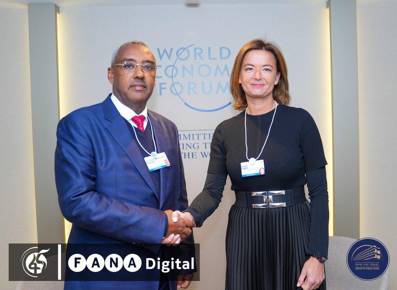 በዳቮስ እየተካሄደ ከሚገኘው የዓለም ኢኮኖሚ ፎረም ጎን ለጎን ምክትል ጠቅላይ ሚኒስትር እና የውጭ ጉዳይ ሚኒስትር ደመቀ መኮንን ከስሎቬኒያ ምክትል ጠቅላይ ሚኒስትር እና የውጭ እና የአውሮፓ ጉዳዮች ሚኒስትር ታንጃ ፋጆን ጋር ተወያይተዋል፡፡