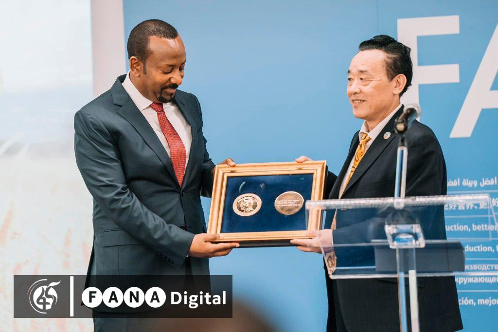 ጠቅላይ ሚኒስትር ዐቢይ (ዶ/ር) በዚህ ወቅት ባደረጉት ንግግር÷ለተመድ የምግብ እና የግብርና ድርጅት የምግብ ዋስትናን ለማረጋገጥ ለምናደርገው ጥረት የከበረውን አግሪኮላ ሜዳልያ ስላጎናፀፈን ምስጋናዬን ለመግለፅ እወዳለሁ ብለዋል፡፡