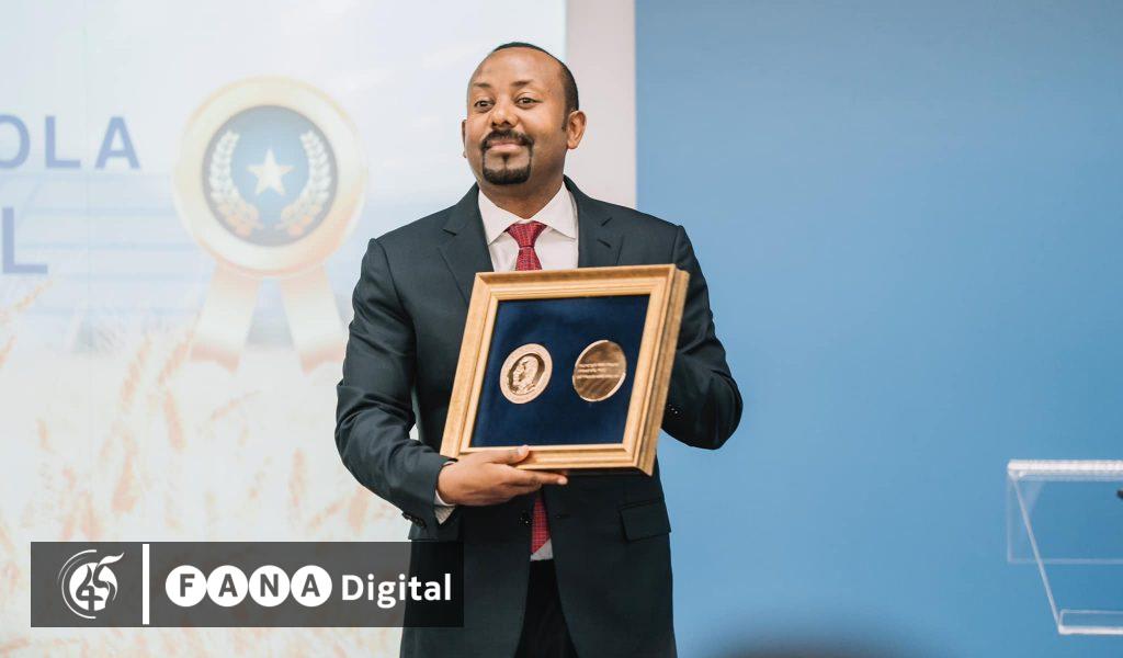 አዲስ አበባ፣ ጥር 20፣ 2016 (ኤፍ ቢ ሲ) ጠቅላይ ሚኒስትር ዐቢይ አሕመድ (ዶ/ር) በዓለም የምግብና እርሻ ድርጅት (ፋኦ) የተሰጣቸው የከበረው የፋኦ አግሪኮላ ሜዳሊያ ሽልማት ላሳዩት አመራርና ቁርጠኝነት እንደሆነ የጠቅላይ ሚኒስትር ጽህፈት ቤት ፕሬስ ሴክሬታሪያት ኃላፊ ቢልለኔ ስዩም ገለጹ።