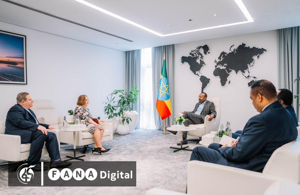 አዲስ አበባ፣ የካቲት 6፣ 2016 (ኤፍ ቢ ሲ) ጠቅላይ ሚኒስትር ዐቢይ አሕመድ (ዶ/ር)የአሜሪካ የውጭ ጉዳይ ሚኒስቴር የአፍሪካ ጉዳዮች ረዳት ፀሐፊ ሞሊ ፊ እና የአፍሪካ ቀንድ የአሜሪካ ልዩ መልዕክተኛ አምባሳደር ማይክ ሀመርን በጽህፈት ቤታቸው ተቀብለው አነጋግረዋል፡፡