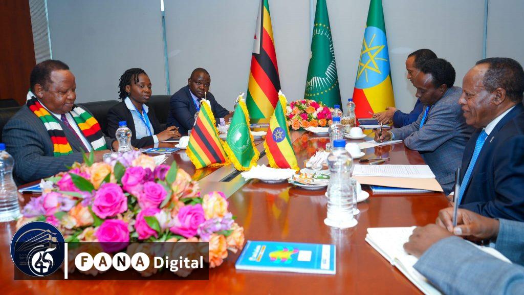 አዲስ አበባ፣ የካቲት 7፣ 2016 (ኤፍ ቢ ሲ) የውጭ ጉዳይ ሚኒስትር አምባሳደር ታዬ አጽቀስሥላሴ ከዚምባብዌ አቻቸው አምባሳደር ፌድሪክ ኤም ሻቫ ጋር የሁለትዮሽ ውይይት አደረጉ።