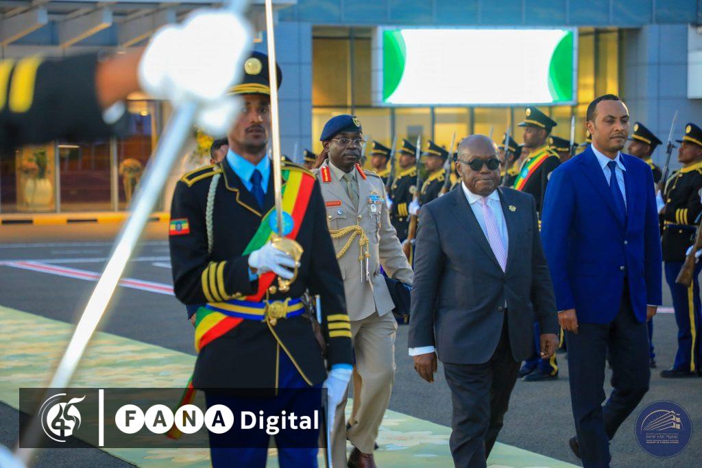 በዚህ መሰረትም የጋና፣ የብሩንዲ ፣ የዚምባቡዌ ፣የኮሞሮስ ፣ዲሞክራቲክ ሪፐብሊክ ኮንጎ፣ የደቡብ ሱዳን እና የሲሸልስ መሪዎች በቦሌ ዓለም አቀፍ አውሮፕላን ማረፊያ የክብር ሽኝት ተደርጎላቸዋል፡፡