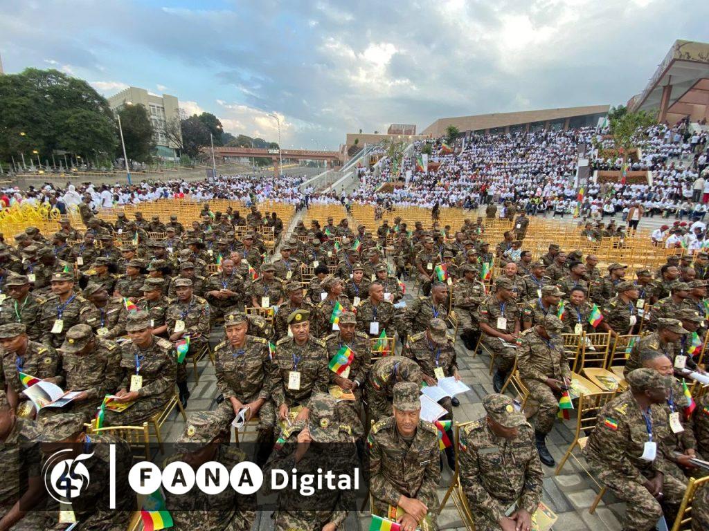 በአከባበሩ ላይም÷ የፌደሬሽን ምክር ቤት አፈ-ጉባዔ አገኘሁ ተሻገር፣ የፌደራል እና የክልል ከፍተኛ የመንግሥት ሥራ ኃላፊዎች፣ የመከላከያ ሠራዊት አባላትና አመራሮች፣ ጥሪ የተደረገላቸው እንግዶች ተገኝተዋል፡፡