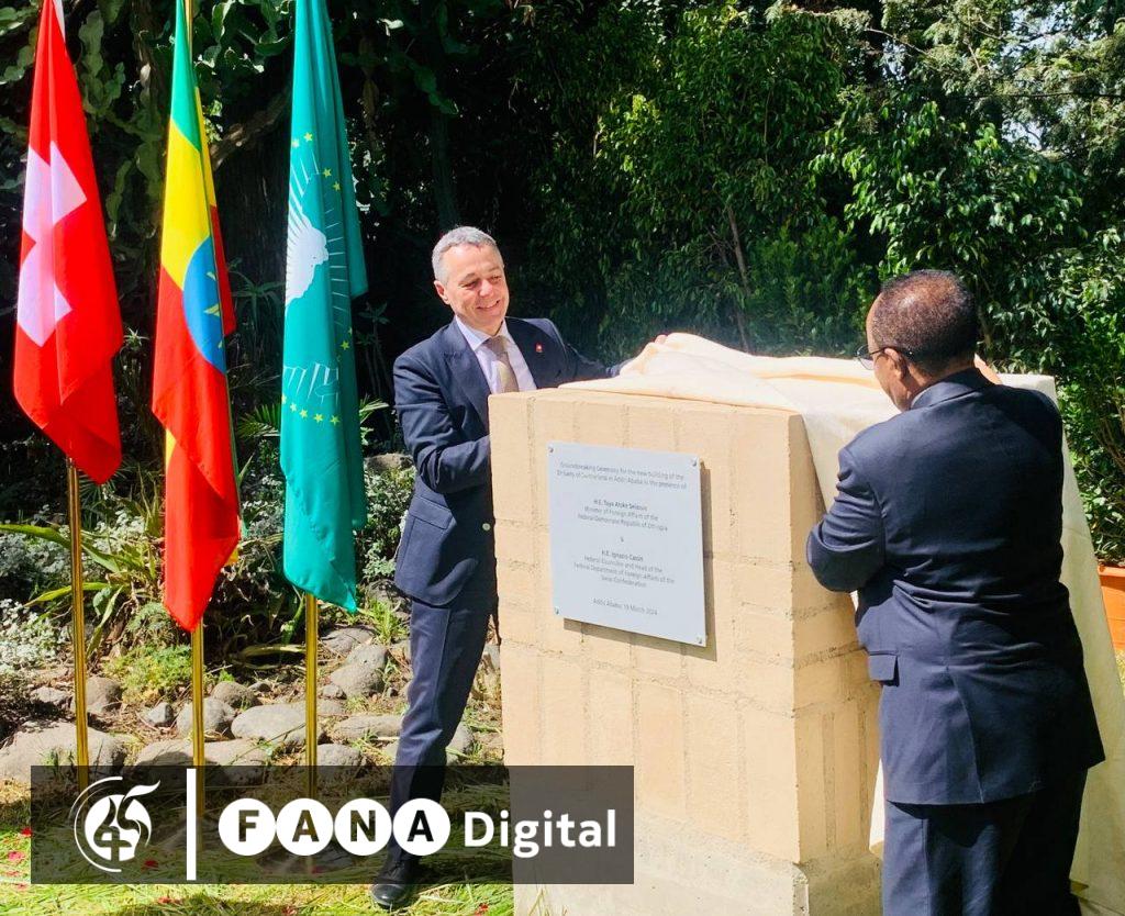 የመሰረተ ድንጋዩን የውጭ ጉዳይ ሚኒስትር አምባሳደር ታዬ አፅቀ ስላሴ እና ከስዊዘርላንድ አቻቸው ኢግናዚኦ ካሲስ አስቀምጠዋል።