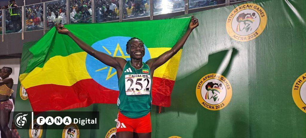 አዲስ አበባ፣ መጋቢት 10፣ 2016 (ኤፍ ቢ ሲ)በ13ኛው የመላ አፍሪካ ጨዋታዎች በሴቶች 800 ሜትር ውድድር ኢትዮጵያ 3ኛ ወርቋን በፅጌ ዱጉማ አማካኝነት አግኝታለች፡፡