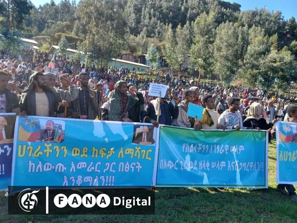 አዲስ አበባ፣ መጋቢት 30፣ 2016 (ኤፍ ቢ ሲ) ህዝባዊ የድጋፍ ሰልፍ በአማራ ክልል ደቡብ ወሎ ዞን ወረባቦ ወረዳ ቢስቲማ ከተማ፣ ሰሜን ሸዋ ዞን መሐል ሜዳ ከተማ እና ደቡብ ወሎ ዞን መቅደላ ወረዳ ማሻ ከተማ ተካሂዷል፡፡