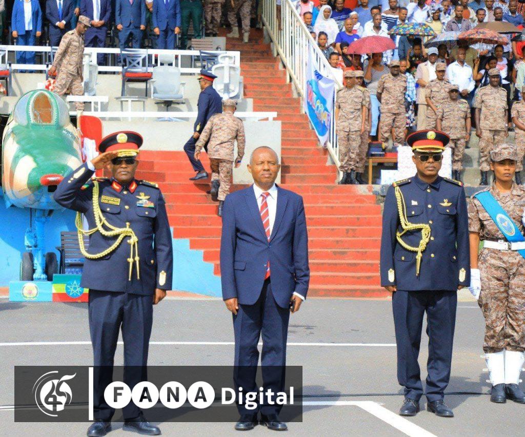 አዲስ አበባ፣ ሚያዝያ 4፣ 2016 (ኤፍ ቢ ሲ) የኢፌዴሪ አየር ኃይል ለመጀመሪያ ጊዜ ያሰለጠናቸውን ቪዥን 2035 የአየር መንገድ ሰልጣኞች በደማቅ ስነ ስርዓት በማሥመረቅ ላይ ይገኛል።