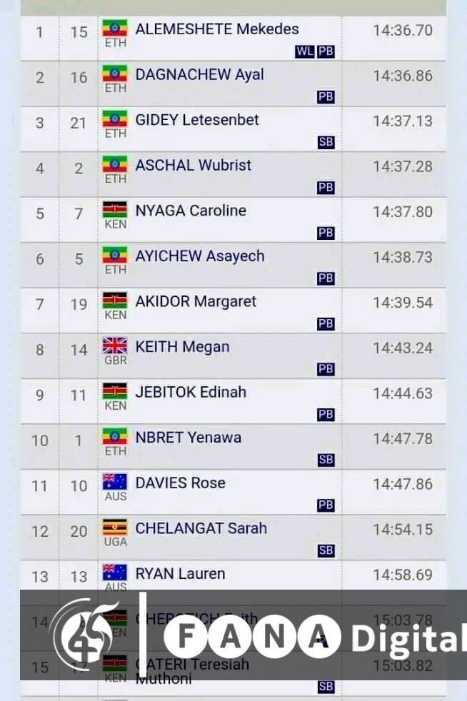 አያል ዳኛቸው ከባድ ፉክክር አድርጋ በ16 ማይክሮ ሰከንድ ተቀድማ ሁለተኛ ደረጃን ስትይዝ ፥ ለተሰንበት ግደይ ሦሰተኛ ደረጃ እንዲሁም ውብርስት አስቻለ አራተኛ ደረጃን ይዘው አጠናቅቀዋል፡፡