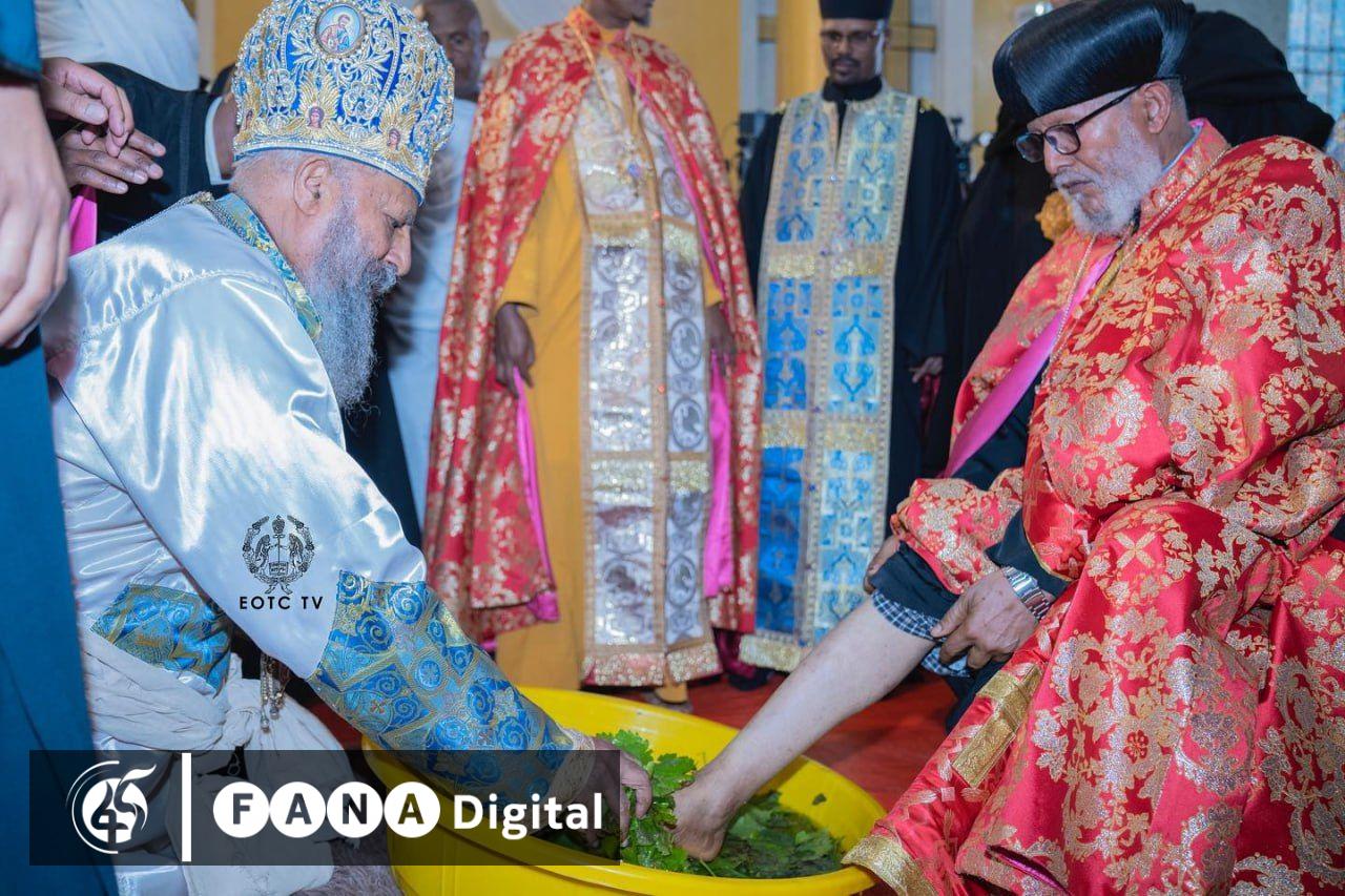 በዛሬው ዕለትም ብፁዕ ወቅዱስ አቡነ ማትያስ የጳጳሳቱን እግር በማጠብ የኢየሱስ ክርስቶስ ትህትናና አክብሮት መገለጫ የሆነውን የ“ሕጽበት እግር” ስነ ስርዓት አከናውነዋል።