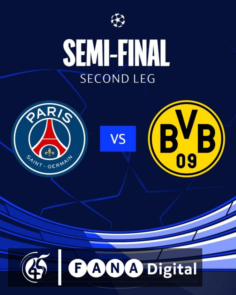 አዲስ አበባ፣ ሚያዝያ 29፣ 2016 (ኤፍ ቢ ሲ) በአውሮፓ ሻምፒየንስ ሊግ ለፍፃሜ ለማለፍ በሚካሄደው የግማሽ ፍፃሜ የመልስ ጨዋታ የፈረንሳዩ ፓሪስ ሴን ዠርሜ (ፒ ኤ ሲ ጂ) እና የጀርመኑ ቦሩሲያ ዶርትሙንድ የሚያደርጉት ፍልሚያ ይጠበቃል፡፡